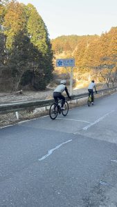 木漏れ日が差し込む林道は、街中では味わえない静寂と、タイヤが路面を噛む音だけが響く贅沢な空間。登坂が始まると徐々に体も温まり、気がつけば冬のウェアでは汗ばむほどの快晴に! 「最初は寒かったけど、最高のライド日和になったね」と、皆さんの表情も自然とほころんでいました。